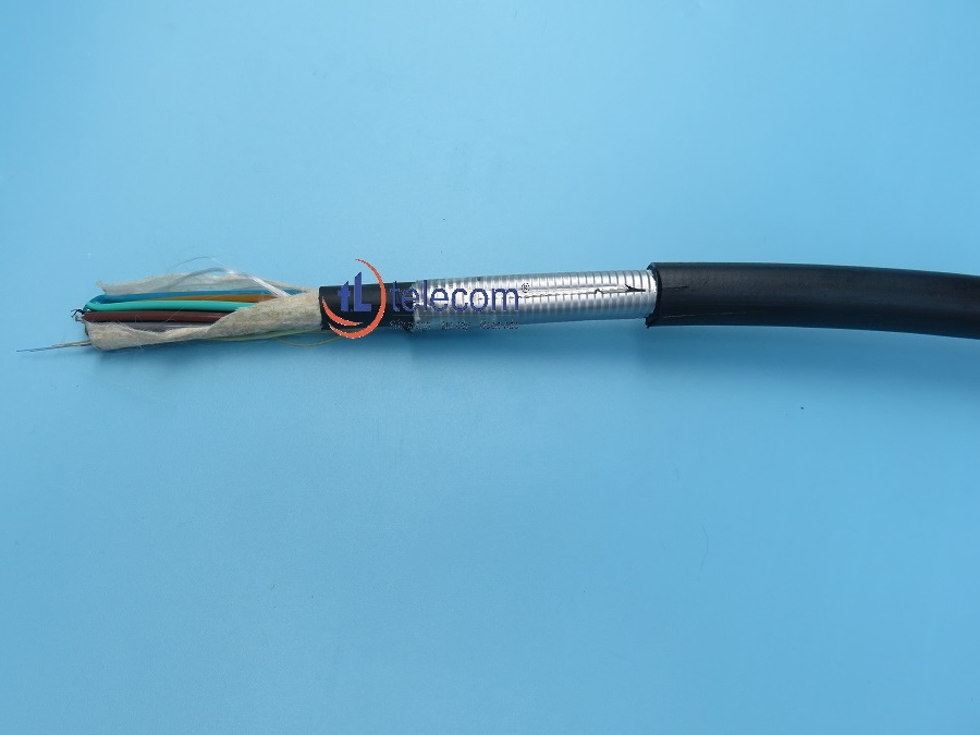 Cáp quang chôn trực tiếp 12FO hay còn gọi là cáp quang cống kim loại 12FO sử dụng loại sợi cáp quang đơn mốt (singlemode) được đặt trong ống đệm lỏng, có nhồi lớp dầu chống ẩm, có màng ngăn ẩm, có lớp băng thép nhăn, có 1 hoặc 2 lớp vỏ bằng nhựa HDPE màu đen.